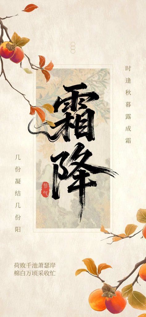 霜降是二十四节气中的第十八个节气,霜降时节意味着冬天即将开始,这时天气渐冷、初霜出现,昼夜温差变化较大。