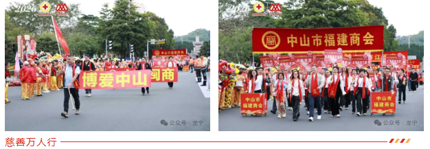 在这一弘扬博爱精神的道路上,一支由中山市福建商会组成的方队格外精神抖擞,他们挥舞着彩旗,与各界爱心人士一同汇入爱的洪流。
